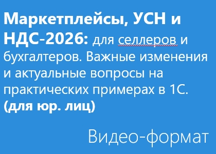 Маркетплейсы, УСН и НДС-2026: для селлеров и бухгалтеров. Важные изменения и актуальные вопросы на практических примерах в 1С. - Онлайн - для юр. лиц